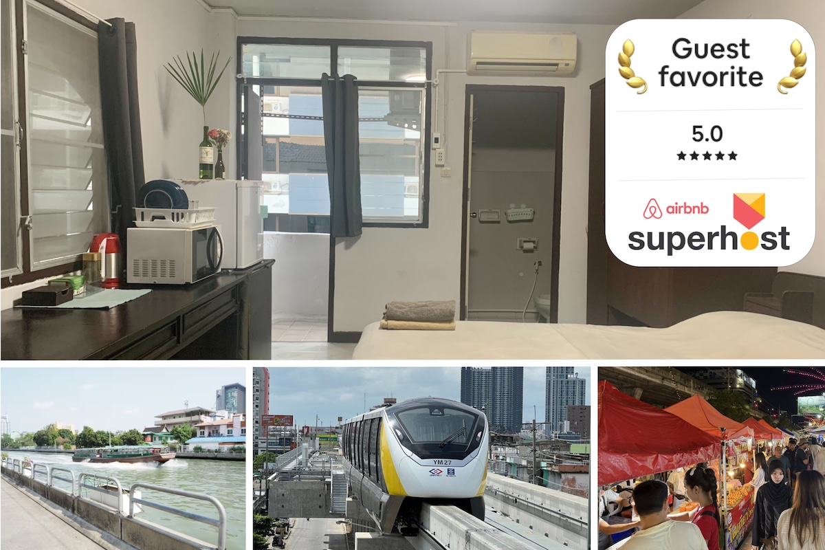 #206hiddenNest es una habitación privada en un apartamento de poca altura ubicado en el lugar local BKK. Mercado nocturno cercano y fácil de llegar al centro de Bangkok en barco y tren aéreo. Este alojamiento está en el segundo piso (solo a pie, sin ascensor), excepto del terremoto. ✓ Comida callejera en la planta baja ✓ A 10 pasos del 7 al 11 ✓ 2 minutos al mercado nocturno. A ✓ 10 minutos a pie del servicio de barco a CTW. ✓ A 5 minutos en auto /a 15 minutos al estadio Rajamangala. ✓ 5 min mini camión taxi 8 THB/viaje O 15 minutos a pie del tren Sky (línea amarilla-Mahat Thai Station)