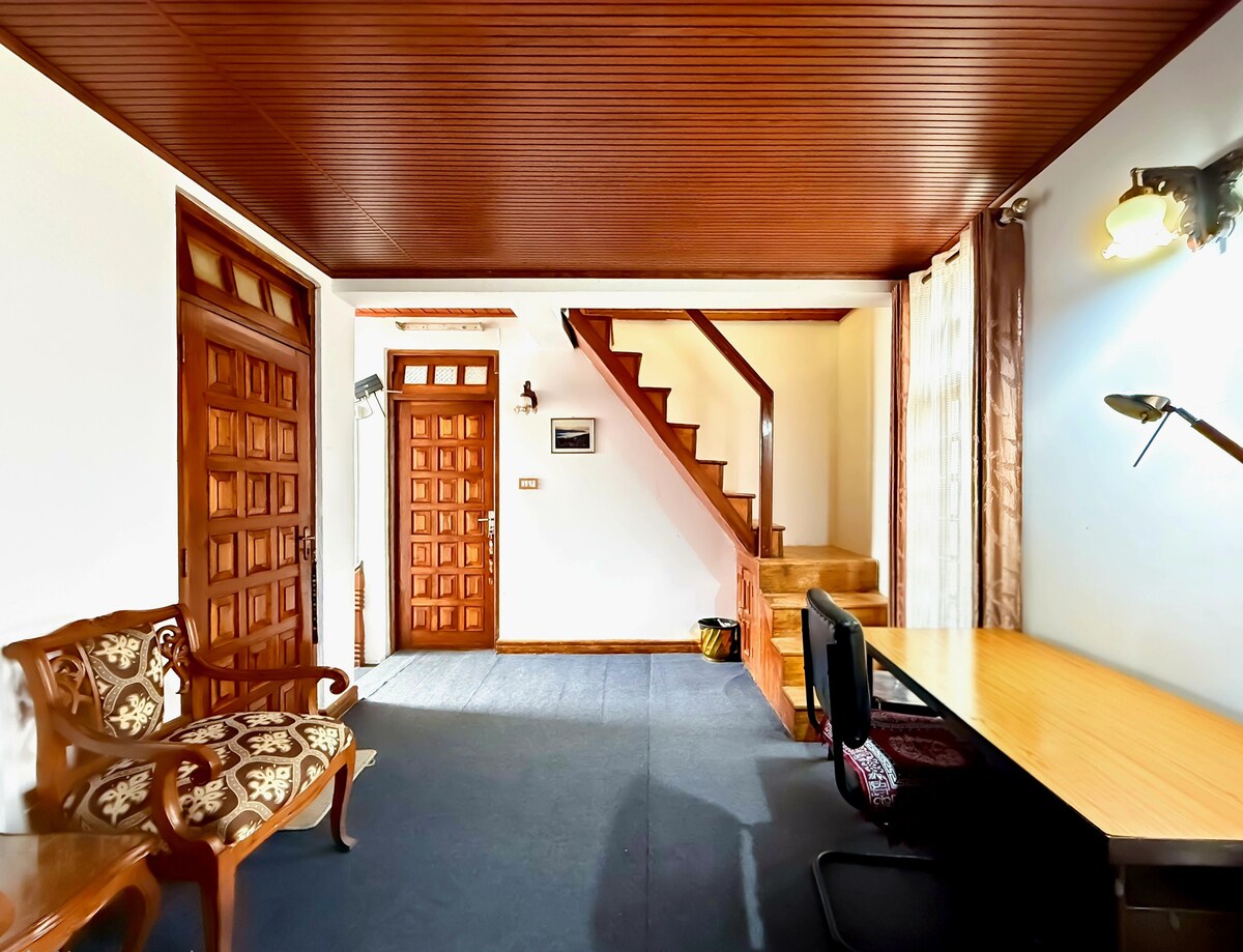 Esta será la estancia más valiosa y razonable en Darjeeling, ya que obtendrías un apartamento entero con cocina totalmente funcional y salas de estar y dormitorios amueblados. A solo 1,5 km de la ciudad principal (Chauk Bazaar), tenemos un barrio seguro y tranquilo adecuado para parejas, familias y viajeros solos. Se puede llegar a pie a atracciones como el zoológico, el museo HMI y el teleférico. Hay taxis compartidos disponibles para desplazarte. La vista desde el balcón privado es fascinante.