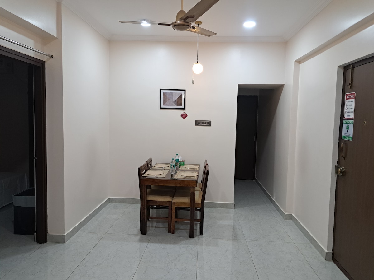 Bienvenido a tu hogar lejos de casa. Nuestro departamento está en el primer piso de la villa sin ascensor, exclusivamente para familias. Parejas solteras y Los solteros están restringidos. Nuestro departamento es espacioso. Aire acondicionado en ambas habitaciones, con baños adjuntos. Con dos amplios dormitorios, nuestro refugio garantiza una noche de sueño tranquilo. El dormitorio principal tiene una cama tamaño king, mientras que el segundo dormitorio tiene 2 camas individuales y dos colchones de piso adicionales.