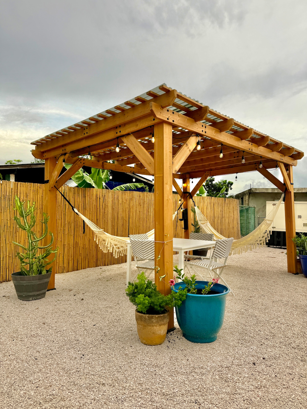 Una acogedora casa de madera privada situada cerca de la PLAYA DE JOYUDA CABO ROJO, rodeada de naturaleza y plátanos. Totalmente equipado con dos dormitorios con aire acondicionado, un baño, sala de estar, cocina y lavadero. Entrada privada. Estacionamiento seguro afuera frente a la casa y en el lateral de una amplia calle secundaria. Accesible a paisajes espectaculares como: El Faro, playas remotas y una variedad de rutas de ciclismo y senderismo. Cerca de restaurantes, farmacias, hospitales y supermercados.