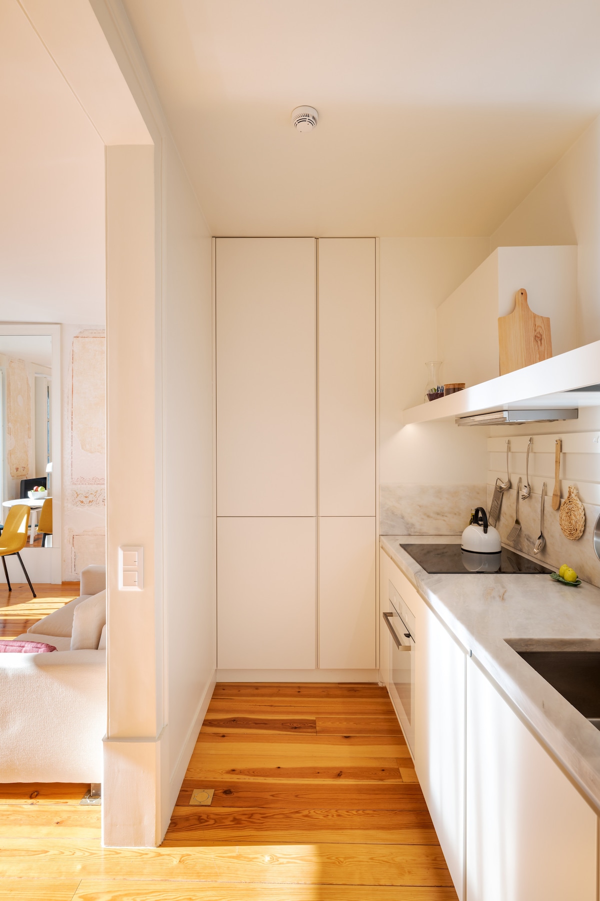 En el departamento no escucharás más de cuatro tipos de sonidos: las bocinas de los barcos que pasan por el Tajo; el timbre de las campanas del tranvía mientras se cruzan en la siguiente calle (entre ellas el legendario 28, que atraviesa todo el histórico circuito de Lisboa). El tercer sonido es de los habitantes de Lisboa del aire, los mirlos, colibríes, gaviotas y otras aves que pasan por el estuario del Tajo. El cuarto es el sonido de las campanas de la iglesia que se extienden por el vecindario, llegando desde la distancia a través de su ventana de elección. Sin embargo, estás en el corazón de la ciudad. El departamento se ubica en una pequeña plaza. Abre a la fachada de la iglesia de Menino Deus (¡que no tiene campanas!), El único que sobrevivió al terremoto de Lisboa. En la plaza se encuentra la casa más antigua de la ciudad y uno de los callejones que dan entrada al castillo de la ciudad. La casa está en la confluencia de Alfama, Castelo y Graça, los distritos más emblemáticos de Lisboa. Los principales sitios históricos de la Vieja Lisboa, además del castillo, la antigua catedral, el convento de San Vicente, el Panteón, están a pocos pasos. Los alrededores cuentan con docenas de restaurantes, casas de fado, cafeterías de moda, tiendas locales y las mejores terrazas de la ciudad. Todo esto a 10 minutos caminando del centro de la ciudad. El departamento cuenta con 70 m2 y fue recientemente reformado. Se ubica en la 2ª planta de un edificio de finales del siglo XIX. Tiene capacidad para 4 personas. Tiene un dormitorio con cama doble. Las ventanas dan a los tejados de Alfama. La sala de estar fue diseñada para acomodar a dos personas más, ya que está amueblada con un sofá cama para dos personas. Tiene una tercera división que sirve como comedor o sala de lectura. Cocina y baño totalmente equipados (con ducha). Las toallas y las sábanas están incluidas, por supuesto.