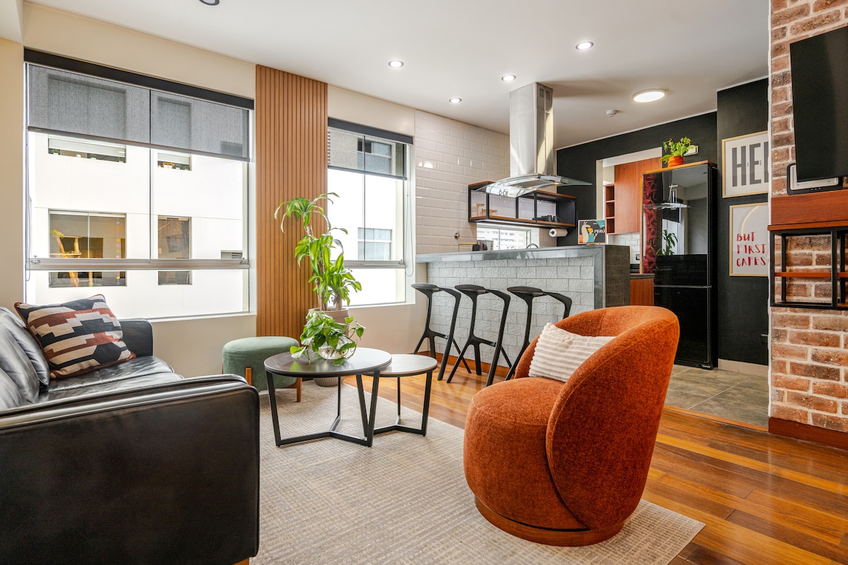 Ubicación de primer nivel en la parte más segura y transitable de Miraflores. A solo 2,5 cuadras del Malecón y rodeado de los mejores restaurantes, cafeterías y tiendas. La unidad orientada al interior significa una estancia tranquila, lejos de calles ruidosas. Diseñado con estilo con cama tamaño king, sofá cama, televisores inteligentes, 1,5 baños, cocina completa, lavadora/secadora, estacionamiento cerrado y espacio de trabajo. Hermosamente decorado y totalmente equipado: todo lo que necesitas para una estancia perfecta.