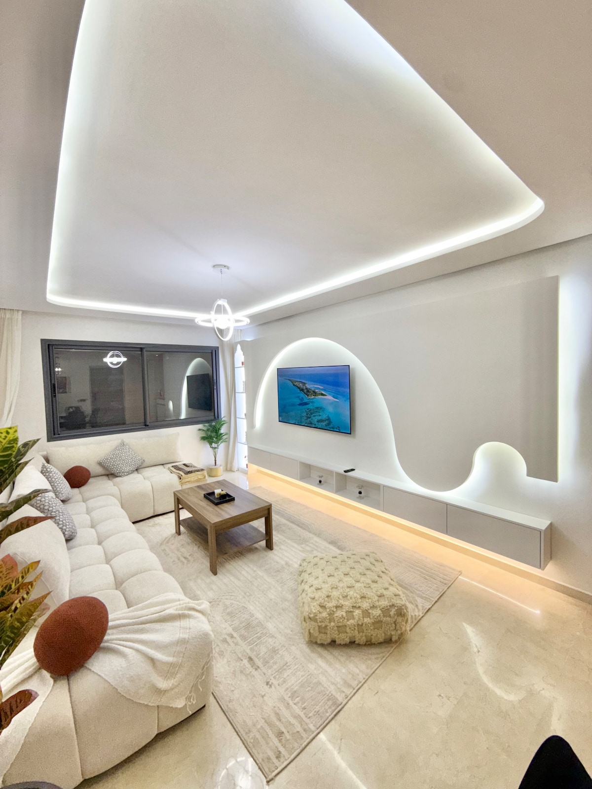Nuestro apartamento está convenientemente ubicado en el corazón de Marrakech. A poca distancia a pie de la estación de tren, numerosas cafeterías, restaurantes, tiendas de comestibles y supermercados. El aeropuerto está a solo 12 minutos en coche, por lo que es ideal para los viajeros. • La propiedad ofrece wifi de alta velocidad, Netflix e IPTV, aire acondicionado, piscina cubierta, gimnasio, aparcamiento privado y cubierto, y seguridad y vigilancia las 24 horas, los 7 días de la semana.