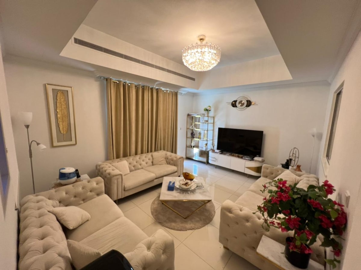 Welcome to our Luxury 1-bedroom apartment in Al Jada, the downtown of Sharjah. - 1BR with living room - Sofa that can accomdate 2 persons - Opposite Sabis school - Near Carrefour (For Grocery) - Al Jada offers a variety of coffee shops, cafes, grocery stores & play areas - TV With Netflix - Kitchen w/ all utensils. - Free Private Parking - Pool Access - Enjoy quick access to Sharjah Airport (10 mins) and Dubai Airport (20 mins) - Free Wifi
