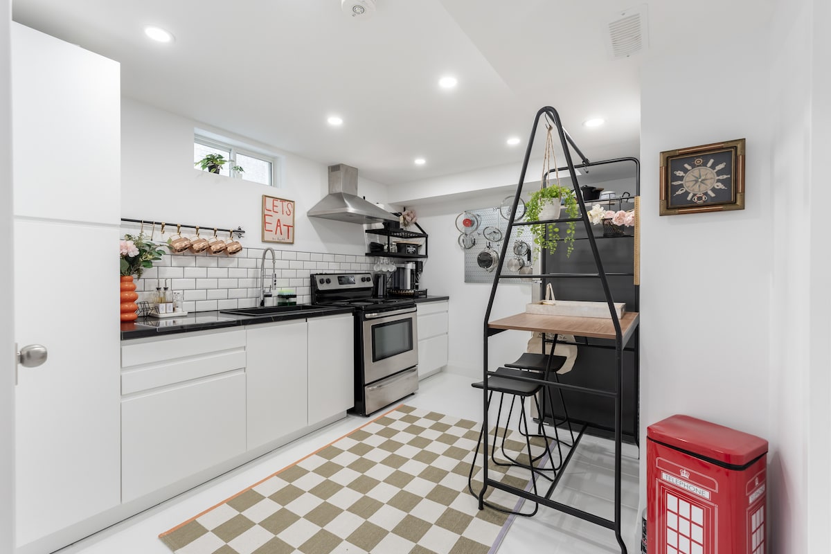 Relájate con toda la familia en un vecindario tranquilo y silencioso. Convenientemente ubicado cerca del aeropuerto Pearson. Centro comercial a poca distancia y parques infantiles. Disfruta alojándote en una unidad privada recientemente renovada, una habitación con dormitorio, una cocina completa y un baño completo. Nuestro alojamiento puede alojar hasta 4 huéspedes, todo para ustedes, con una cama tamaño queen y una cama extraíble (tamaño king) en la sala de estar. ¿Acabas de aterrizar? ¡Ponte en contacto con nosotros para que te recojan en el aeropuerto!