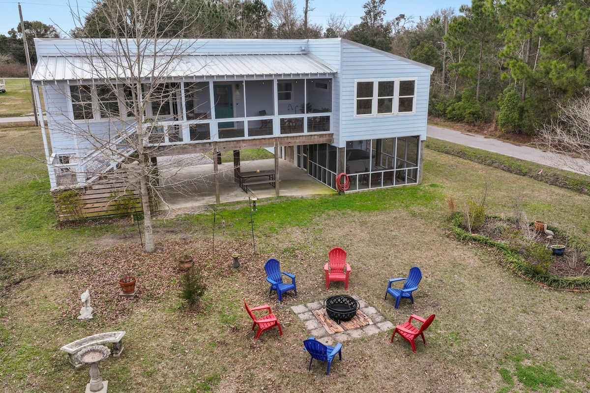 Relájate en Coastal Comfort, un bungalow de 3 dormitorios cerca del Parque Nacional, el centro de la ciudad y East Beach. Disfruta de un porche con mosquitero con jacuzzi, fogata, hamaca y parrilla. Perfecto para familias y mascotas, estamos a solo 9 millas de Keesler AFB, ideal para PCS, festivales o escapadas románticas. Totalmente equipado para estancias prolongadas, este alojamiento ofrece todo lo necesario para relajarse en Ocean Springs.