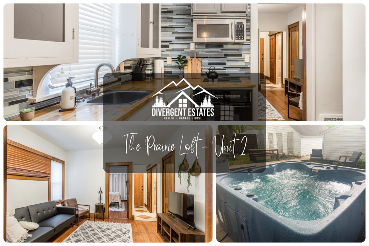 This beautiful early 1900 historical apartment is great for a family get away. Hot tub open April -December 5am-11pm. Three minutes from airport. Ask us about our park and fly program. Two queen beds, a full size hide-a-bed with memory foam mattress. Full kitchen, two patios, one of them being private just for you. Bikes are available for your use. Swimming pool and lake five blocks away.