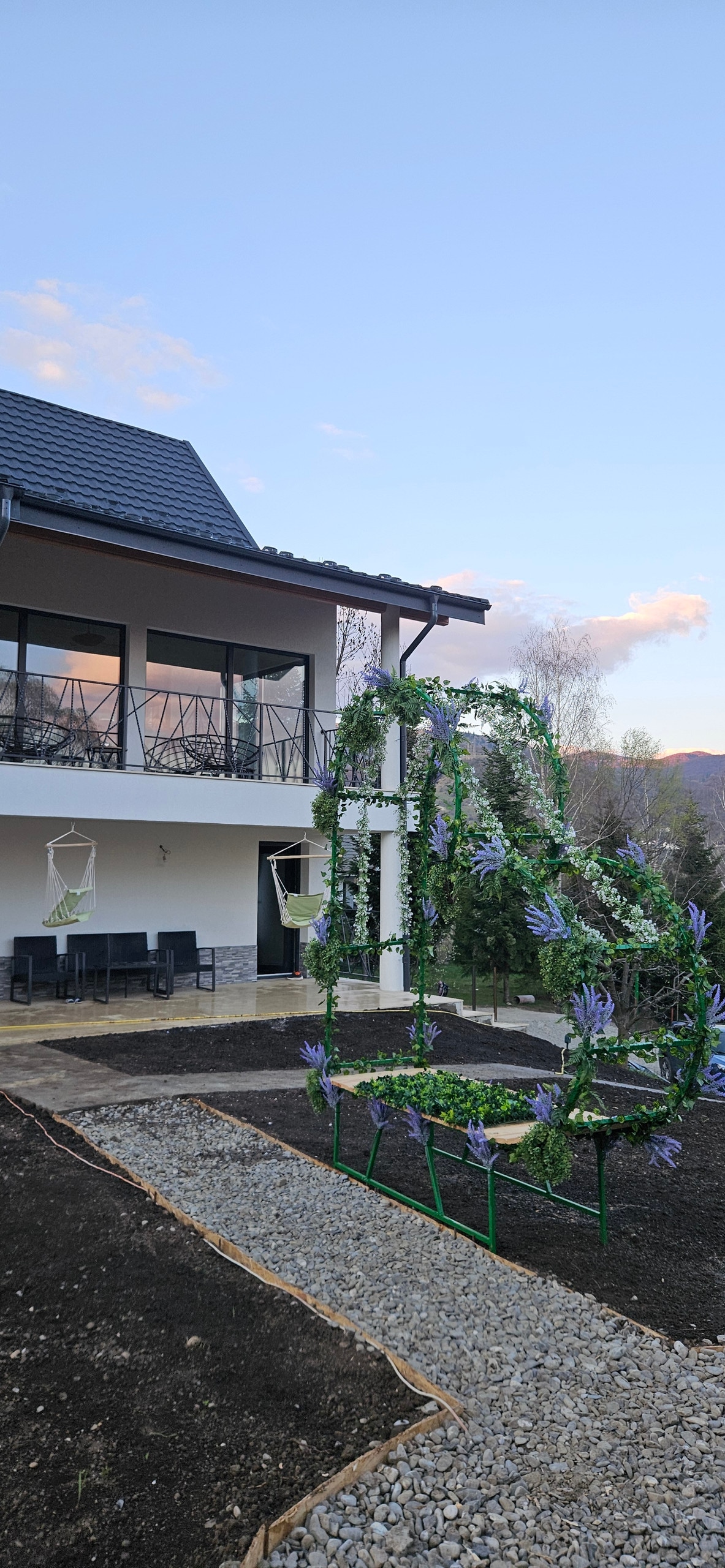 Nature, relaxation, comfort: “Casuta de sub deal” is a villa located in Măgura, on the Buzău Valley, at the foot of the mountains, in the heart of nature. The villa consists of a ground floor and a first floor with 3 bedrooms with a king-size bed, 2 bathrooms, a generous living room with an open-space kitchen and a fireplace. The spacious courtyard offers barbecue facilities, a seasonal swimming pool , a hot tub ( extra pay ), a gazebo, a children’s playground and private parking.