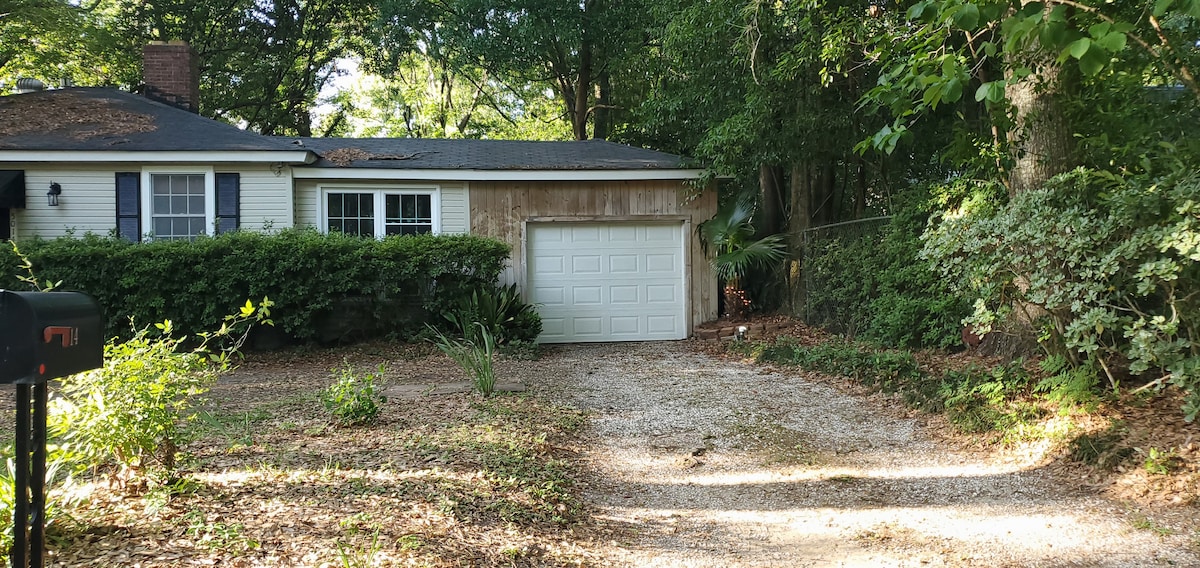 ● Lavretta Park cuenta con canchas de pickleball y un parque infantil. ● La ducha exterior tiene chorros de agua largos y calientes y es lo suficientemente grande para dos personas. ● Las aceras de Old Shell Road conducen hasta la Universidad del Sur de Alabama (2,4 kilómetros). ● Este espacio es como una cabaña aislada en el bosque. Tendrás el garaje, el Airbnb y el patio solo para ti. ● Wifi 5G de Comcast a 333 Mbps ● El garaje eléctrico da acceso al alojamiento en Airbnb ● Aire acondicionado de ventana y radiador calefactor ●Acceso gratuito a Netflix•Prime Video ● Este es un lugar fantástico para caminar o andar en bicicleta.