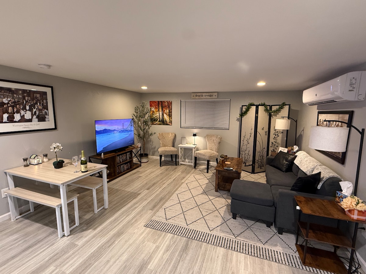 1 dormitorio encima del garaje con entrada propia. El sofá se convierte en una cama, 2-3 adultos máximo. Sistema de AC SMART TV, sin cable. WIFI La contraseña está en la caja detrás del televisor. La cocina dispone de lavavajillas, cafetera, microondas. Se proporcionan platos, sartenes/ollas y ropa de cama. A solo unas horas de San Francisco, Yosemite o Dodge Ridge Ski Resort. POR FAVOR, debido a problemas de salud familiar, no se permiten animales en la unidad.
