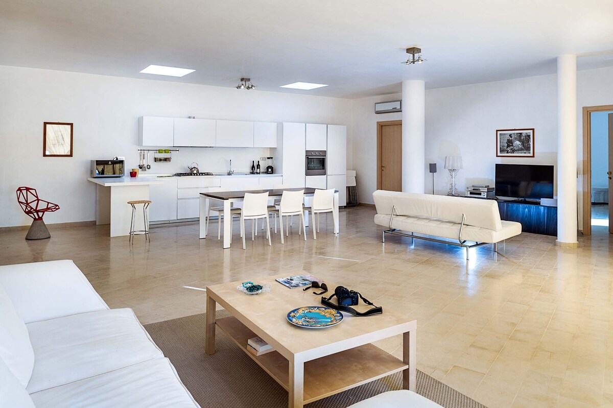 La naturaleza pura del campo siciliano es lo que ofrece nuestra encantadora casa, a la vez que está muy cerca de la ciudad y del mar. La casa está «eco-orientada» y ofrece un estilo de vida cómodo, manteniendo su toque de origen «campagna». Desde la azotea podrás disfrutar de unas vistas increíbles al mar y de maravillosas puestas de sol. Contamos con nuestra propia fuente de agua potable, filtrada y analizada de forma natural, huertos, huevos frescos y energía solar. Dos dormitorios con camas tamaño queen y mucha magia en el aire :) ¡Bienvenido!