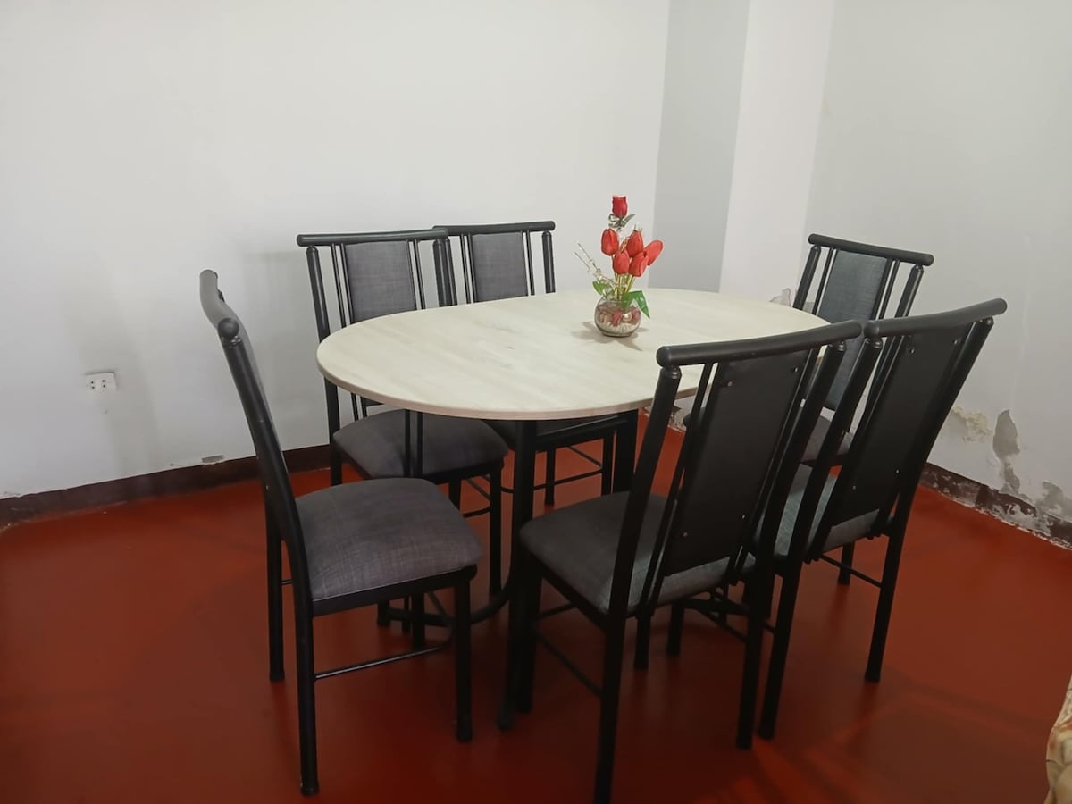 Departamento ubicado en un segundo piso donde Tu familia estará cerca al centro y al circuito de playas está ubicado a 5 minutos caminando de la plaza y a 10 minutos de la playa .