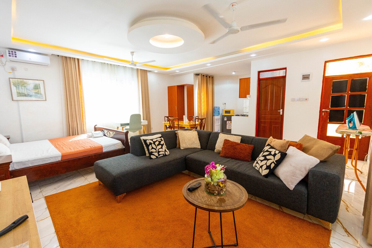 ¡Escápate a un elegante y elegante refugio de un dormitorio ubicado en el vibrante Mtwapa! Ya sea que busques una escapada romántica, una escapada en solitario, una escapada de fin de semana o una escapada de trabajo tranquila, nuestro espacio bellamente diseñado ofrece la mezcla perfecta de comodidad y conveniencia. Ubicado justo al lado de Malindi Road, nuestro espacio está cerca de playas vibrantes, animada vida nocturna, restaurantes y centros comerciales, ¡el lugar perfecto para la relajación y la aventura!
