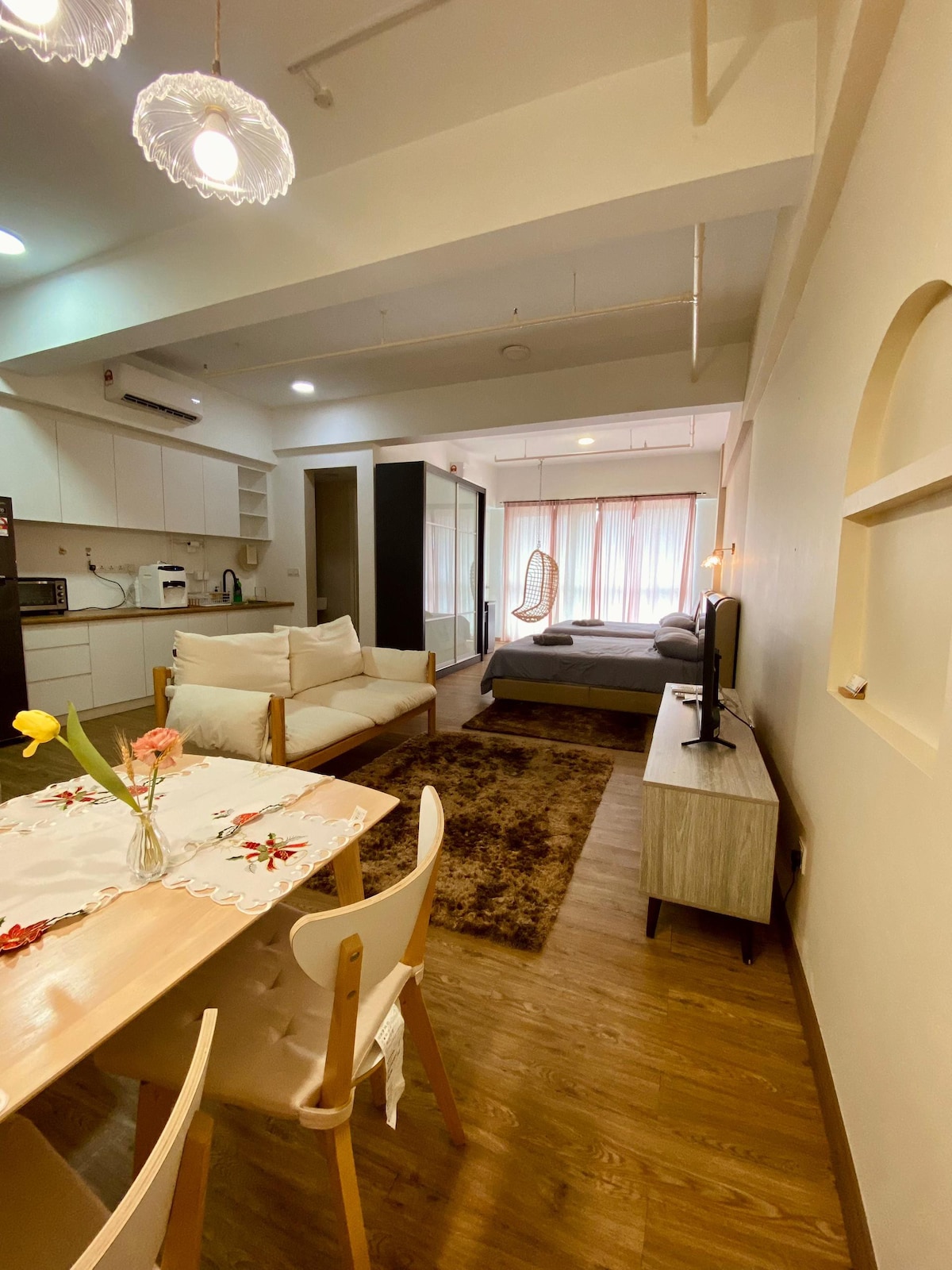Welcome to our serene minimalist studio, where simplicity meets sophistication in a space designed for comfort and tranquillity. Ideal for solo travellers, couples or business travellers seeking a peaceful urban escape, our studio offers a sanctuary away from the hustle and bustle of city life, while still providing easy access to all the amenities and attractions including Sunway Pyramid & Sunway Lagoon Theme Park just away 15 minutes' drive.