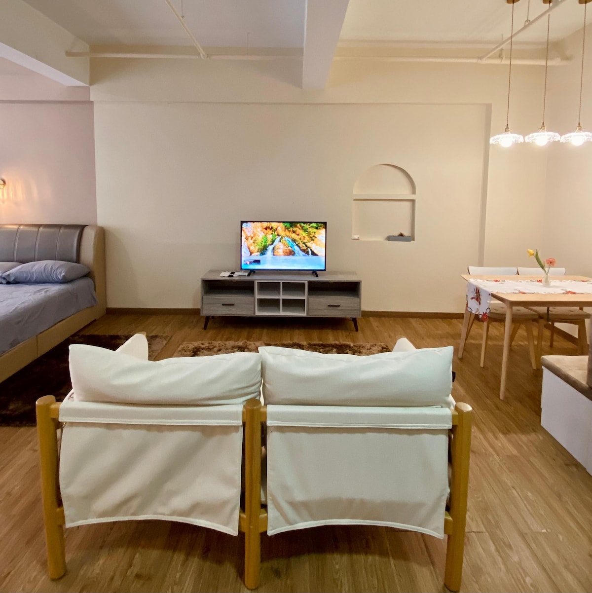 Surround yourself with style in this standout space. #Staycation #HaveFun AMENITIES: - 2 Super Single Bed in the master room - 1 Single Bed in the second room - 3 fresh Towels will be provided - Shampoo and Shower Gel - Washing machine (FREE to use~!) - FREE 1 parking - Hair dryer - Iron set - Fridge - Kettle - Induction Cooker - Microwave - WIFI (100mbps TIME Fiber) - Branded TV BOX (EV Pad) - Branded 4K Projector Screen (Over 120 inches) Check-in is from 3pm, and check-out is 11am
