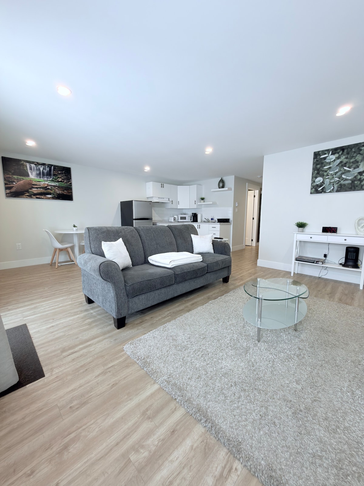 Bienvenido a nuestro nuevo hogar ubicado en la codiciada zona de Moncton. Un exclusivo apartamento privado de un dormitorio que cuenta con su propia entrada, una impresionante cocina contemporánea, una acogedora sala de estar completa con un sofá cama, un dormitorio lujosamente cómodo, baño privado y la comodidad de una lavandería en la unidad con lavadora y secadora. Convenientemente céntrico: a minutos del casino, el coliseo, el parque Magnetic Hill, el centro de la ciudad, restaurantes, centros comerciales, el aeropuerto y la salida de la autopista.