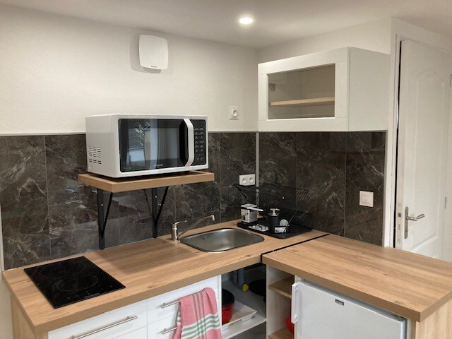 Estudio de 14 m2, cerca de la autopista (1 min), con todo cerca: panadería y McDonald's/restaurantes a menos de 5 minutos a pie, Cora y KFC a 15 minutos a pie. Independiente: entrada/aseo/ducha/zona de café Planta baja: práctica si tiene maletas Cama de 140 x 190 cm Atención: proporcionamos platos/cubiertos, pero no medios para cocinar, hay un microondas a su disposición. Se proporcionará desayuno: pan de molde (o bollería)/leche/mantequilla/café/té/yogur/fruta