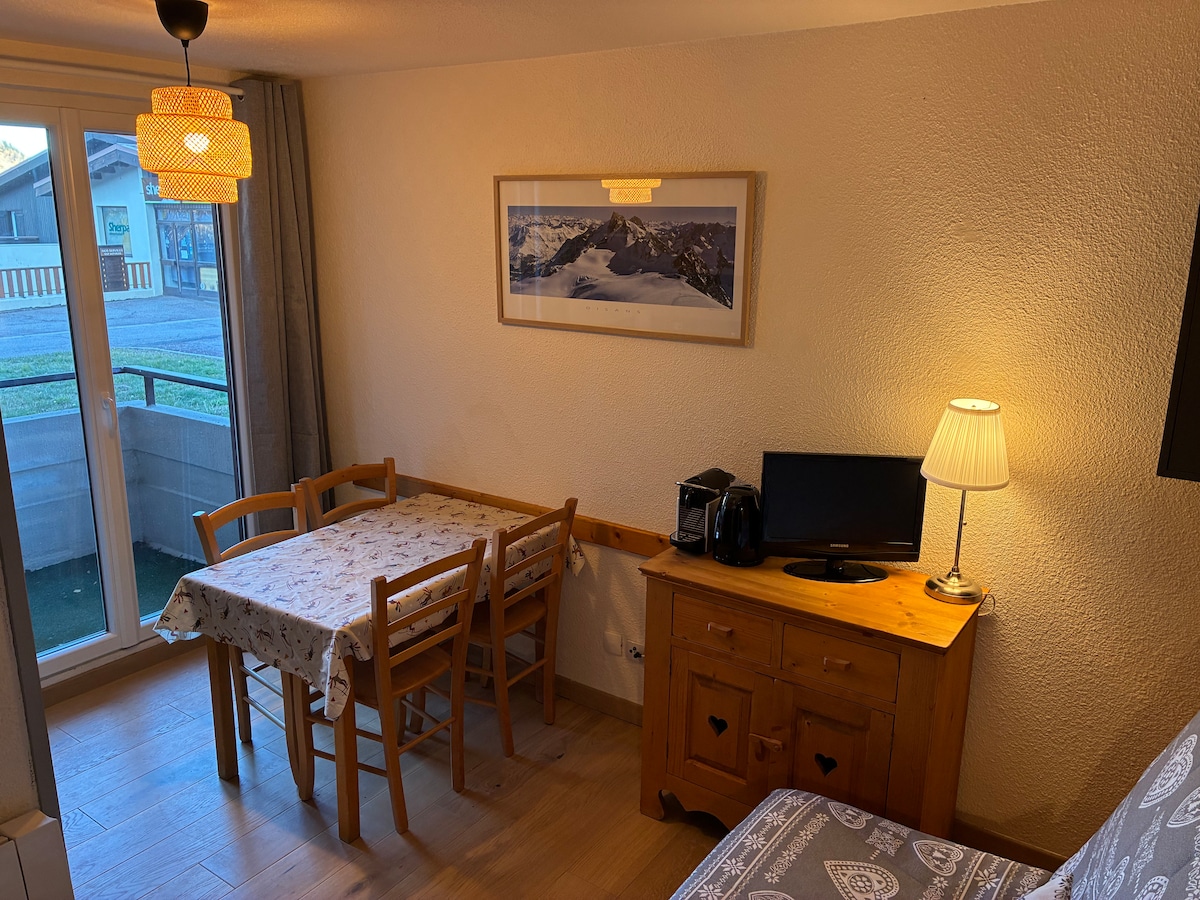 Situado en pleno centro del pueblo 1800, acogedor apartamento de 24 m² reformado en 2017 con habitación independiente, balcón orientado al suroeste para 4/6 personas en residencia tranquila y impresionantes vistas al valle blanco. Estacionamiento privado y gratuito al aire libre. Armario para esquís individual y cerrado al pie del edificio. Servicio de transporte gratuito a toda la estación frente a la residencia.(10 minutos a pie de las primeras tiendas) No se proporcionan sábanas ni toallas.
