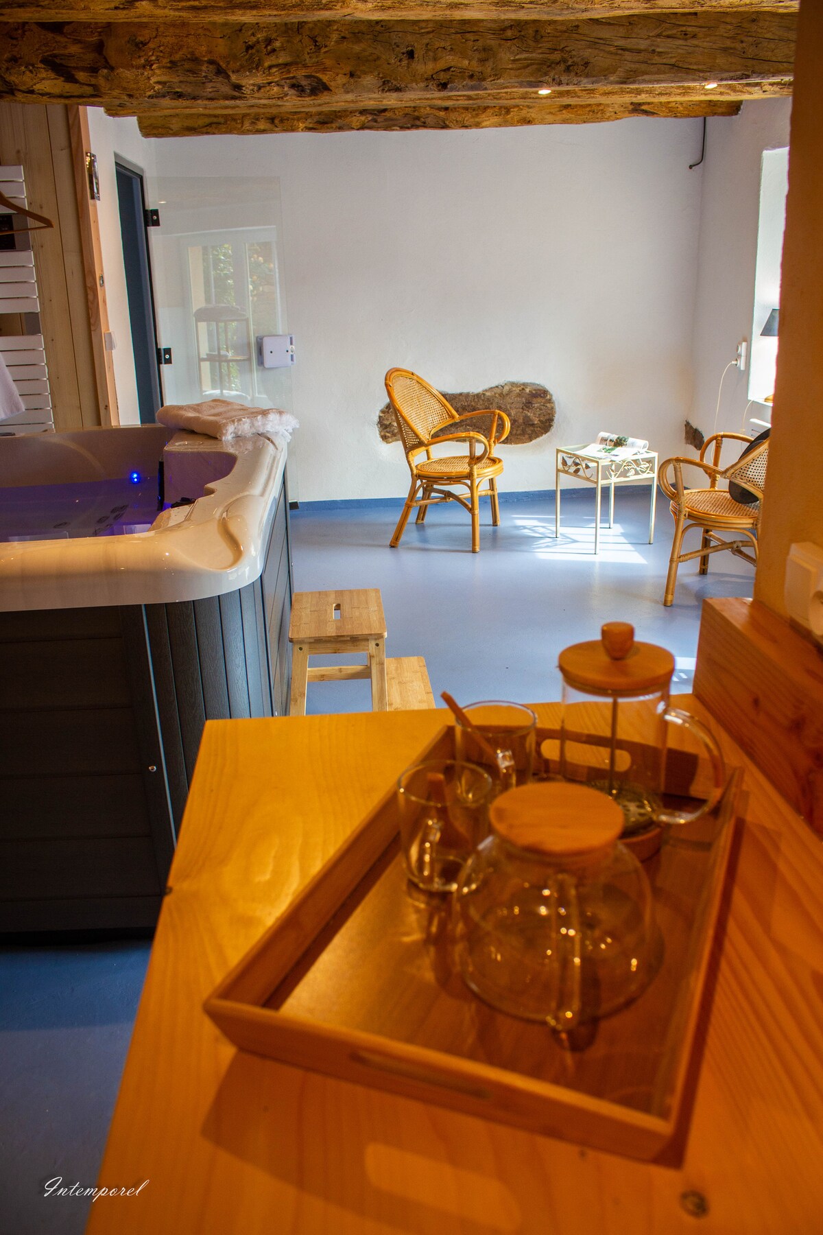 Alojamiento insólito en el ambiente «hobbit» enclavado en el fondo de un jardín salvaje con vistas a la ciudad. Se accede a través de una ruta de senderismo (empinada). El alojamiento consta de una sala de estar con chimenea, una pequeña cocina, una alcoba para el dormitorio, un pequeño baño, una terraza con vistas al valle y la ciudad (a 1 km), y novedad, un baño calentado con leña (excepto en verano) Hay velas y música disponibles para crear ambiente ¡Ideal para una estancia romántica o un momento fuera de temporada!