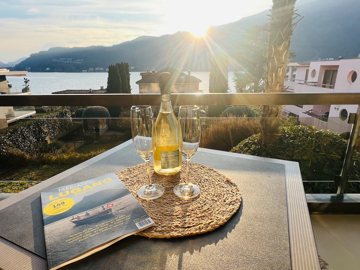 Welcome to our designer apartment in Castagnola, Lugano! Autumn getaway: 2-night stays welcome, relax with lake view and free parking! Enjoy breathtaking views of Lake Lugano. Just steps away from the Olive Grove Trail and San Michele Park. Nearby funicular to Monte Brè. Lugano city center is 10 minutes away with museums, shopping, and restaurants. Easy access to public transport and numerous outdoor activities nearby. A refined and unforgettable stay!