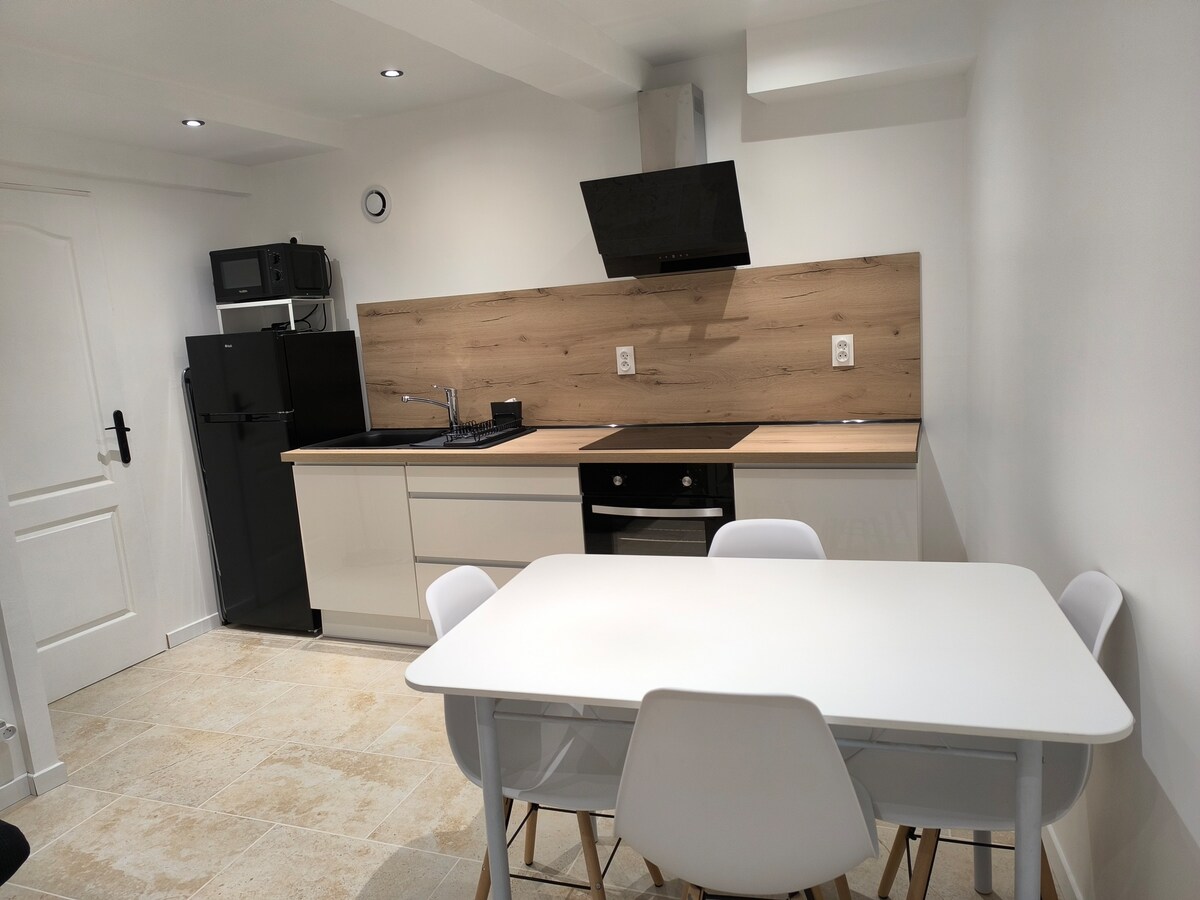 Nuestro encantador apartamento, recién reformado y decorado por un arquitecto, está equipado con muebles nuevos y tiene capacidad para 2 viajeros, o incluso 4 con su sofá cama. Cómodo y elegante, se encuentra en un callejón sin salida tranquilo en Montélimar y estará enteramente a tu disposición. En la planta baja de la casa, tendrás acceso al jardín y a la piscina (no climatizada). Este acogedor apartamento es ideal para tus estancias turísticas o de negocios. ¡Se admiten mascotas!