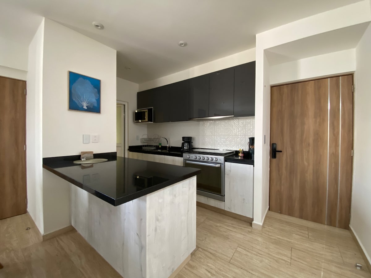Espacioso y moderno, ideal para estancias cómodas y tranquilas. Alberca climatizada, gimnasio, sauna y terraza con asador (sujeta a disponibilidad). También cuenta con chapoteadero y área infantil. Dos camas, dos sillones (opcionales para niños, solicitar sábanas). Totalmente equipado y en excelente estado. Perfecto para trabajo remoto o viajes de descanso.
