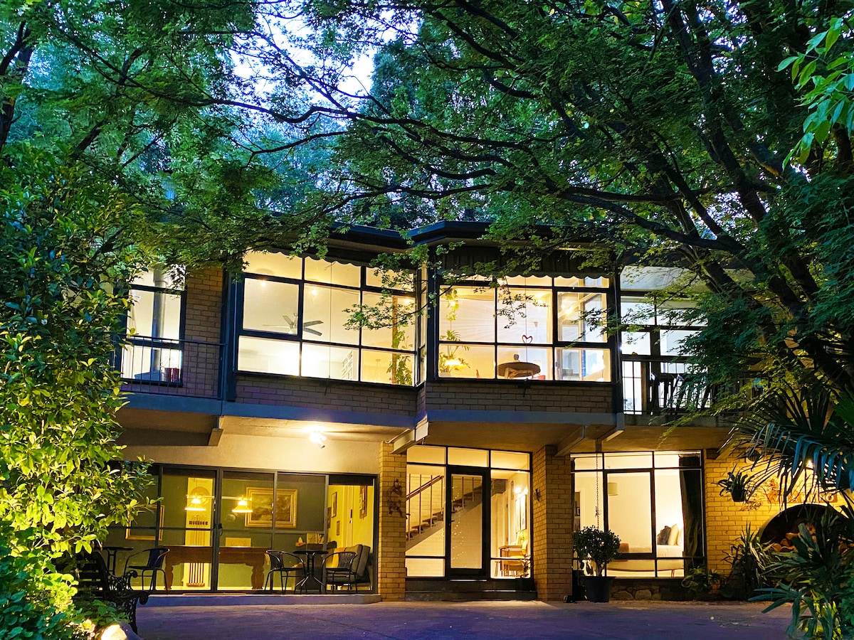 Fiesole Villa se encuentra en un lugar tranquilo en las montañas Dandenong. A poca distancia en coche de la ciudad para escapar del ajetreo y rejuvenecer entre los árboles. Disfruta de una experiencia única en nuestro invernadero con jardín. Troncos de árboles como sillas, disfruta de una comida y de las luces de la ciudad. Disfruta de la chimenea abierta, sumérgete en el moderno baño o disfruta de paseos llenos de helechos al alcance de la mano. Glasshouse está disponible para alquilar para microbodas, escapadas, propuestas y cumpleaños por un coste adicional.