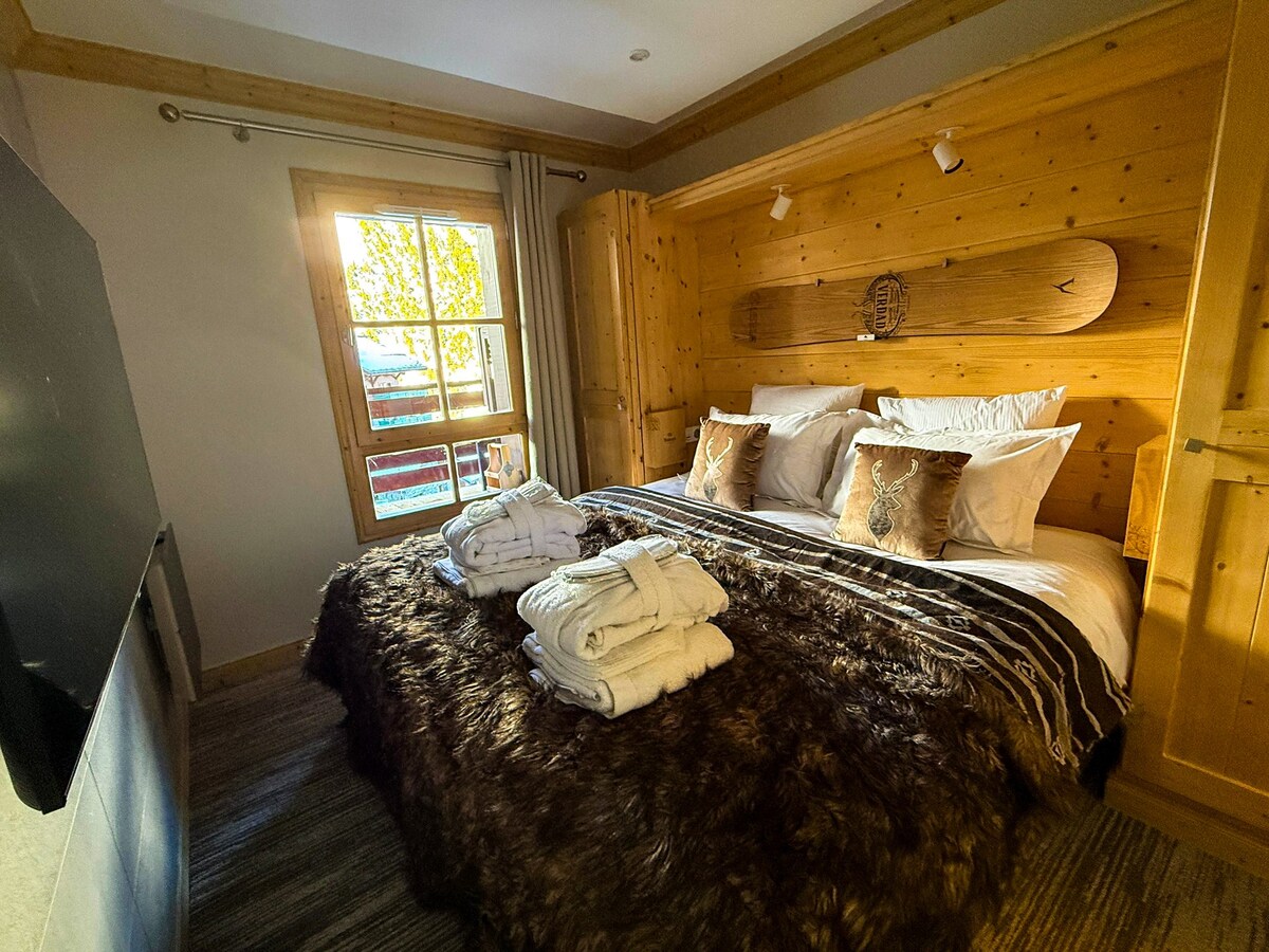 Auberge Jérôme, 57m2 prestations très haut de gamme, niveau réception, secteur très calme, vue montagne degagée. Capacité 6 personnes .1 chb lit Queen size +TV , 1 chb 2 lits adultes simples +TV , salon TV avec convertible 2 places 140x200 . Cuisine équipée.1 SDB + baignoire+ lave linge séchant+WC. 1 SdE avec douche et lavabo. 1 WC séparé. Ski in, ski out. Piscine Chauffée dans résidence. Wifi. Peignoirs , chaussons ,serviettes fournies. Lits et ménage faits à l'arrivée. Pack de bienvenue.