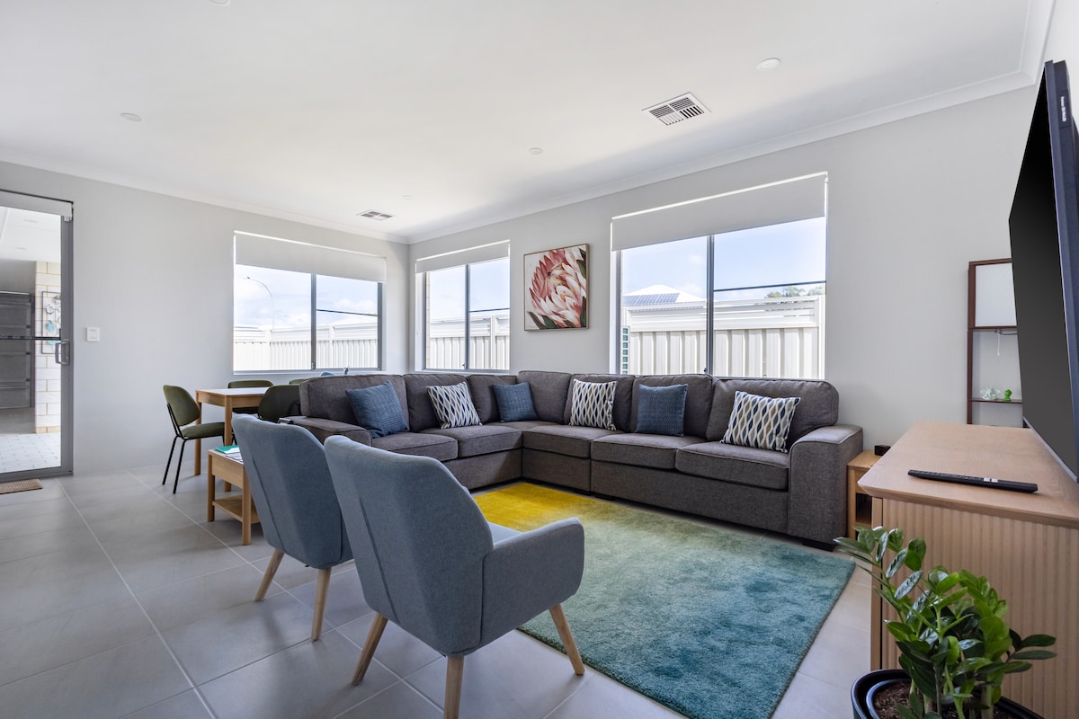 Este lugar único tiene un estilo propio. Una casa de huéspedes completamente nueva, diseñada para un refugio elegante y cómodo para aquellos que buscan una escapada costera. Todas las necesidades para que este sea un hogar lejos de casa. Situada en un bloque de dunas elevado y con su propio acceso privado, esta hermosa casa de huéspedes es el lugar perfecto para escapar. Situado en el suburbio costero de Yanchep, nuestros huéspedes pueden disfrutar, entre otras cosas, de la impresionante laguna Yanchep, el parque nacional y el campo de golf Yanchep.