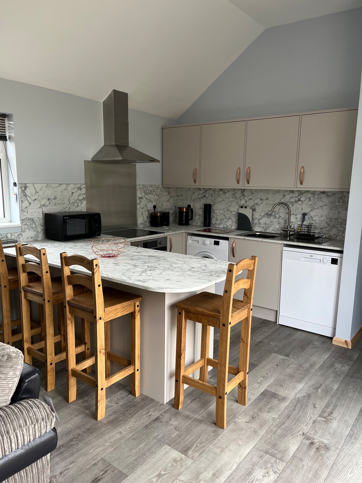 Nuestra cabaña ofrece una acogedora estancia independiente con una cocina totalmente equipada, salón, dormitorio con cama superking, ducha de lujo en suite y servicio con inodoro adicional. Esta casa ecológica tiene calefacción por suelo radiante y contiene muchos artículos reciclados, desde las tablas de andamios recuperadas del exterior hasta las muchas gemas reutilizadas que se encuentran en el interior. Al salir hay un patio privado orientado al sur y un jardín con su propio espacio de estacionamiento, todo a solo un paseo tranquilo de la ciudad.