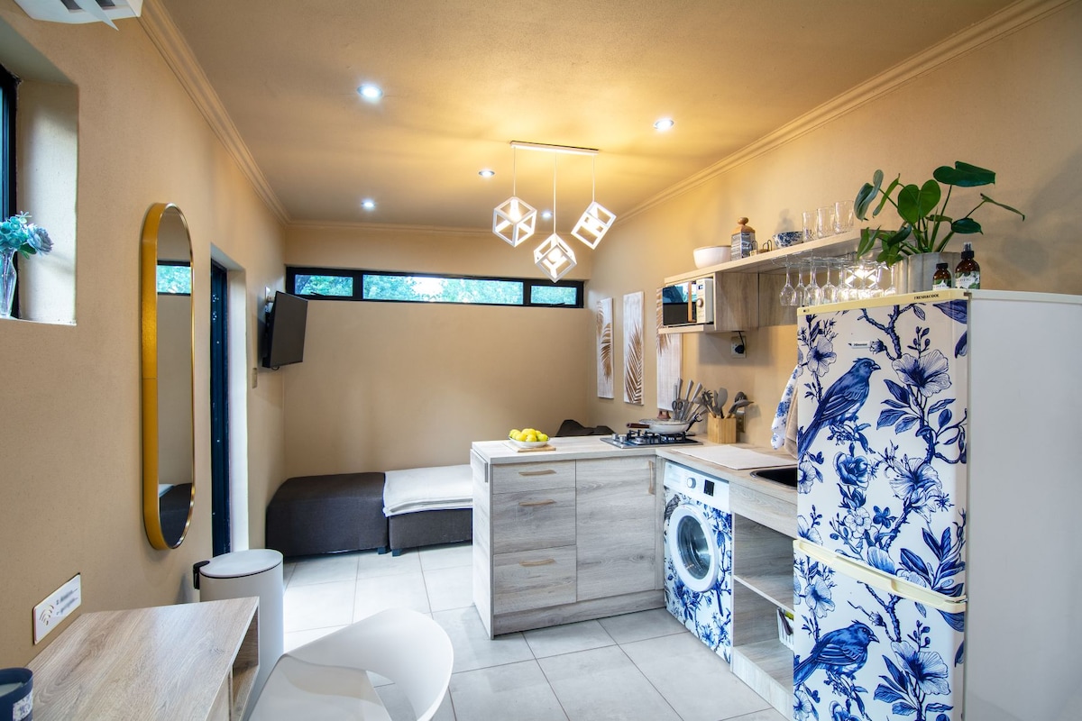 Tu refugio sencillo y sereno en Johannesburgo Ya sea que estés en Joburg por negocios, visitando amigos y familiares o haciendo turismo, Willowild Cottage ofrece una escapada tranquila y céntrica. A solo 5,6 km de Sandton City y el Gautrain, a 8 minutos en auto, este encantador refugio se encuentra en un jardín paradisíaco, donde los huéspedes pueden disfrutar de frutas y verduras cultivadas orgánicamente. Con estacionamiento seguro y acceso privado a la casa de campo, Willowild Cottage combina simplicidad, comodidad y tranquilidad para una estadía ideal.