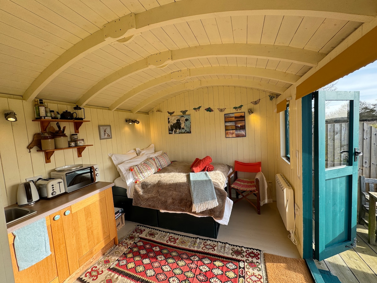 Escapa de la carrera de ratas y desconecta. Esta espaciosa y lujosa cabaña de pastor privada tiene un baño privado, estufa de leña, radiador eléctrico y preciosas vistas ininterrumpidas al sur a través de los campos, que reflejan las diferentes estaciones agrícolas. Cuarto de ducha privado y cálido con toallero eléctrico a solo unos pasos al otro lado del jardín. A solo 4 millas de la costa norte de Norfolk, en Morston o Blakeney. La escapada romántica perfecta. ¡Descansa, lee, juega a un juego de mesa o simplemente relájate y escapa de la vida real!