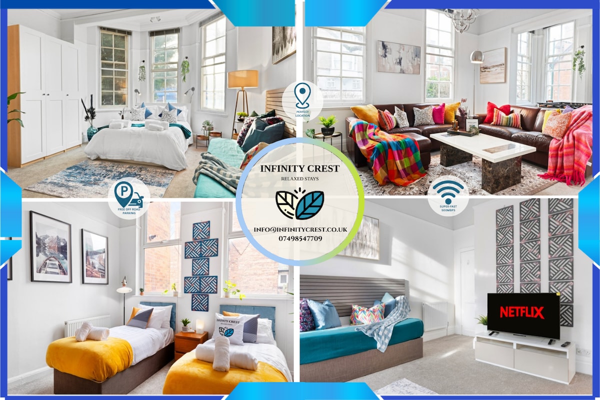 Situado en una tranquila calle del centro de la ciudad, disfrutarás de una vida espaciosa y lujosa, con 2 dormitorios y 2 baños en suite. Esta propiedad de alta especificación garantiza que las estancias cortas o largas sean lo más cómodas posible. 30 segundos - M&S y Sainsbury's A 1 minuto de la antigua plaza del mercado. A 3 minutos del castillo de Nottingham. A 5 minutos del Museo Contemporáneo de Nottingham. A 8 minutos de la estación de tren de Nottingham, Theatre Royal y Nottingham Playhouse. ¡Superanfitrión en el 5 % superior! Todos los huéspedes deben mostrar una licencia de conducir válida