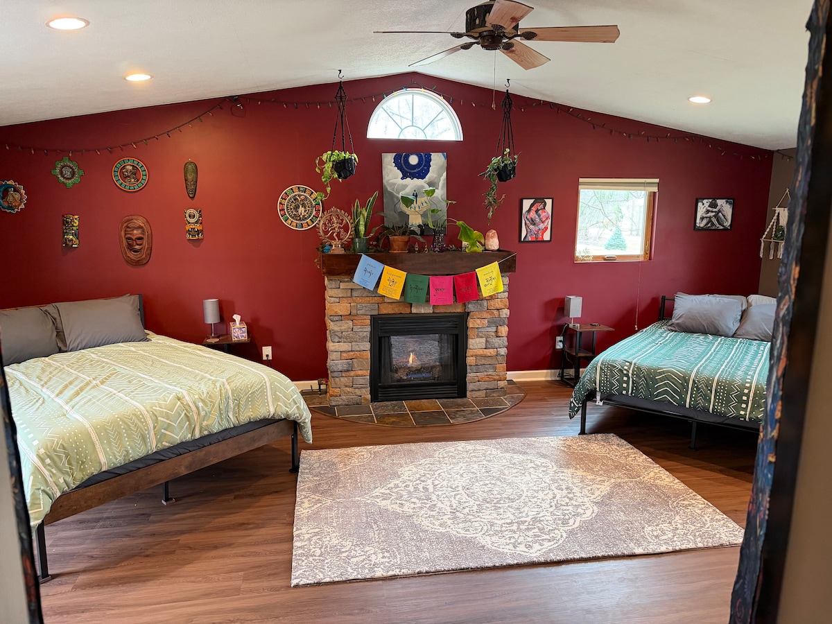 Si buscas una escapada relajante y acogedora, nuestra casa de madera vintage de 2 dormitorios de la década de 1950 se ha actualizado recientemente con todas las comodidades de un hogar. Cuenta con suelos de madera, techos de catedral, amueblado en una cómoda mezcla de lo antiguo y lo nuevo, chimenea eléctrica, electrodomésticos nuevos y baño remodelado con una gran ducha a ras de suelo. Nuestra casa está a pocas manzanas del centro de Clare, donde encontrarás tiendas locales únicas, restaurantes y entretenimiento.
