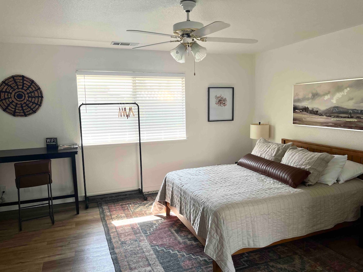 Nuestra impresionante y muy espaciosa suite de invitados de dos dormitorios tiene su propia entrada privada y jardín. Estamos ubicados en un barrio tranquilo y seguro a menos de 10 minutos del lago Whiskeytown, a 5 minutos del centro de la ciudad y a 5,9 millas de Bethel. La suite de invitados tiene un aspecto moderno y limpio, y camas muy cómodas que son muy apreciadas por nuestros huéspedes. La suite tiene dos dormitorios grandes, una amplia sala de estar, cocina americana, baño y espacio privado al aire libre.