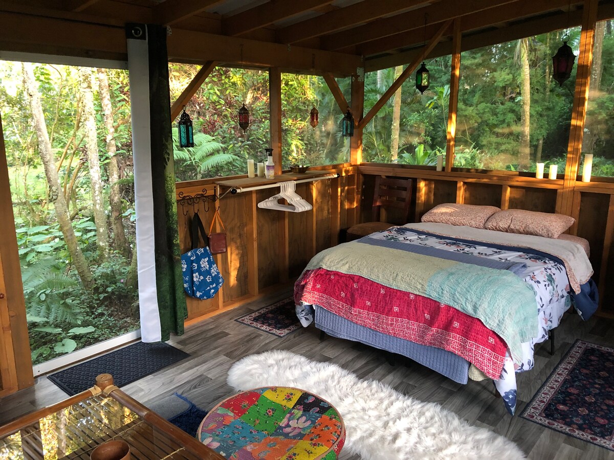 Our unique jungalow provides space to relax & experience nature & adventure like never before. Nestled in a beautiful Hawaiian forest, this listing features a cozy cabin with a queen bed. The bathroom is traditional open Hawaiian style although still private. Showering outside in the rainforest is truly magical! While this unit is just suitable for 2 people, we do have another listing where we have combined 2 cabins for up to 4 people. Plug n play hot tub add on available.