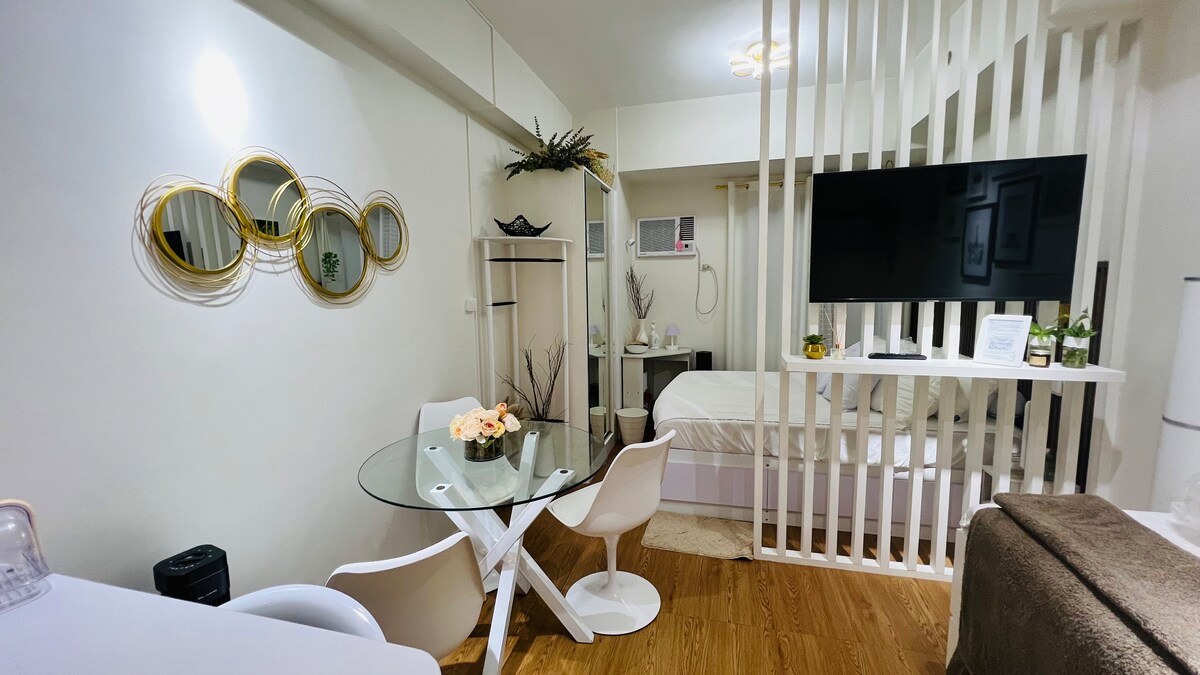 Experience style and convenience in this modern BGC studio! Just a 2-minute walk to Venice Canal Mall, it’s perfect for work and leisure. Enjoy a hidden pullout queen bed, an expanding table for dining or work, and an 84” projector for a cinematic experience. Steps from cafes, groceries, and restaurants, everything you need is within reach. Whether you're unwinding, exploring, or working remotely, this cozy retreat is the ideal staycation spot! 🎬🎮✨