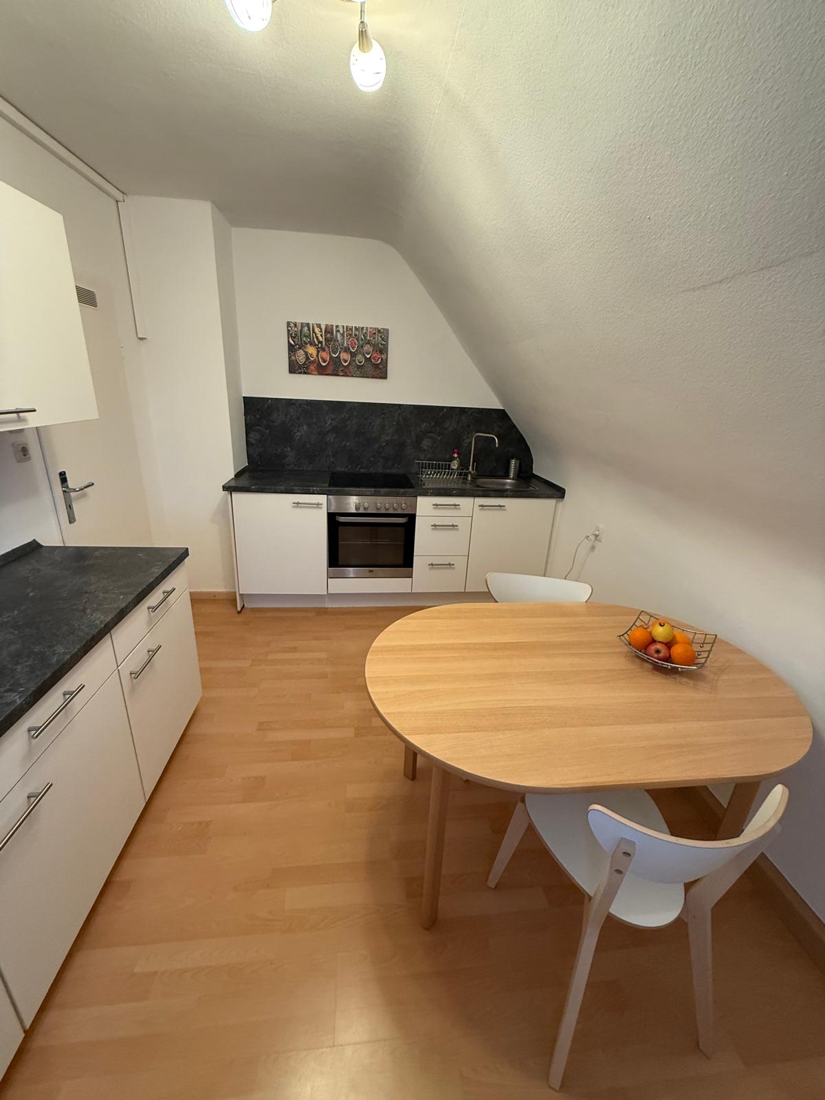 El apartamento está en el segundo piso, ¡accesible a través de escaleras! En este alojamiento especial, todos los puntos de contacto importantes están muy cerca, por lo que planificar tu estancia es muy fácil. El departamento tiene la tecnología más moderna. Está equipado con calefacción por suelo radiante, entre otras cosas. Además, el apartamento ofrece una cama (140x200) y un sillón en el dormitorio. En el salón-comedor, un sofá (Ewald Schilling), mesa de centro (Joop), mueble base de TV con frente de vidrio oscuro (Ikea), cocina (frente mate negro)