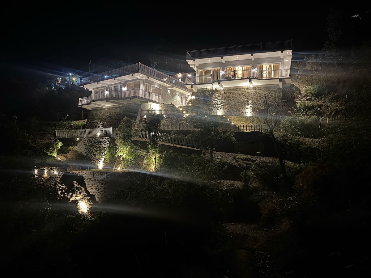 * Casa de campo de lujo de 3 dormitorios y 2 baños * Situado en la cima de una colina con las mejores vistas a la nieve del Himalaya y vistas al bosque de la región. * Numerosos espacios de trabajo en la casa y al aire libre * Césped alrededor de la cabaña con amplio espacio * Cocina totalmente equipada con todos los electrodomésticos * Wifi, estacionamiento, TV inteligente, juegos de mesa * Pisos pintorescos de la bahía, barbacoa y chimenea, tumbonas para descansar, opciones gastronómicas al aire libre * Cuidador in situ