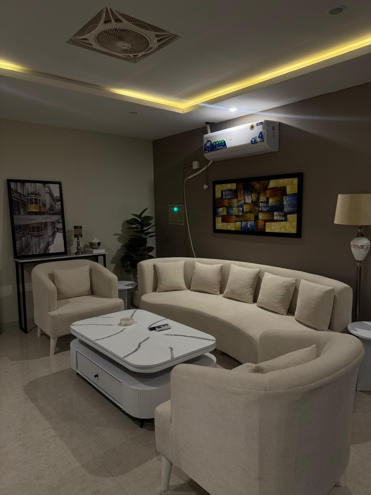 A stylish 2 BHK which is family friendly, All rooms are air conditioned, ACs installed in all rooms plus the lounge. All the appliances like Water Dispenser, Fridge, Freezer, Air Fryer, Toaster, Kettle, Induction electric cooker, Juicer machine, Microwave oven are present at the place, all the kitchen utensils, cutlery & bathroom essentials along with towels + cleaning products available at the residence. 65 Inch Smart TV, 10 MBPS Wifi, Netflix & Amazon Prime available for entertainment. ✅💯