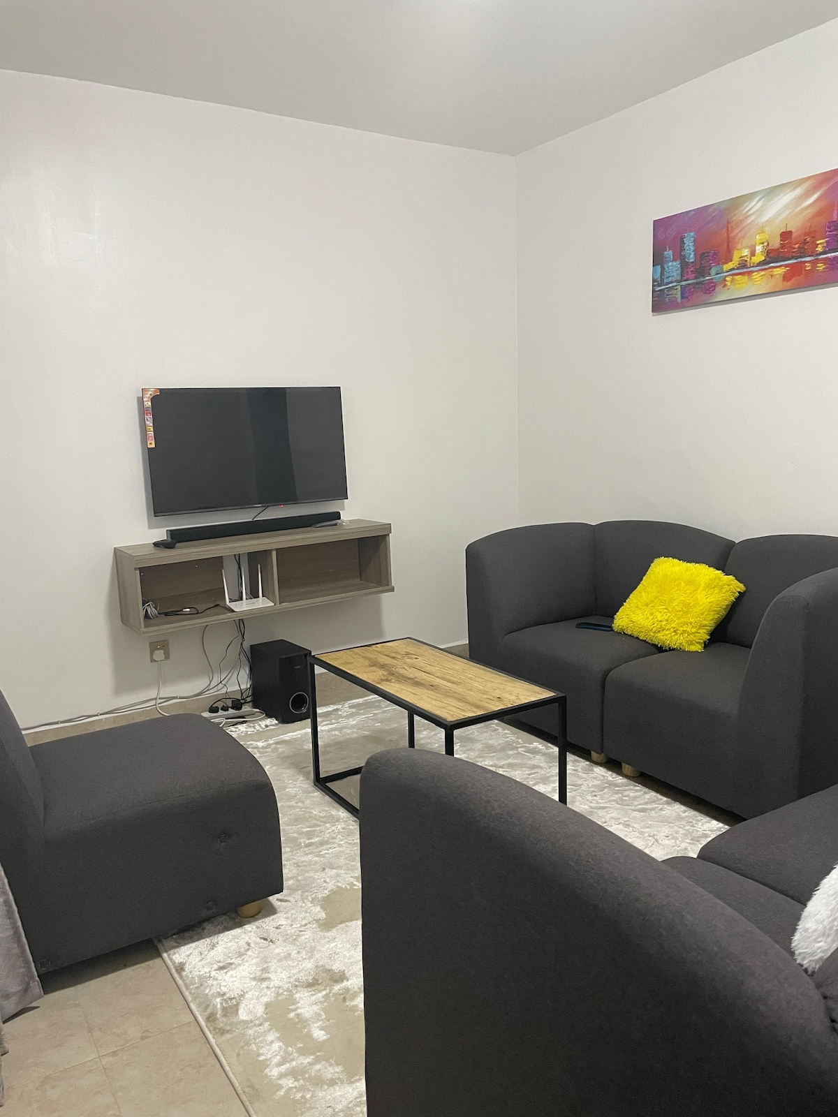 One bedroom apartment in AlphaOne Apartments that guarantee a modern, peaceful and spacious feel.MySpacebyAlpha one is fully serviced,well light at the top floor of the building with some custom made furniture.Ample parking is available within the building with 24hr security inclusive of a perimeter wall and electric fence.A sofa bed is also available