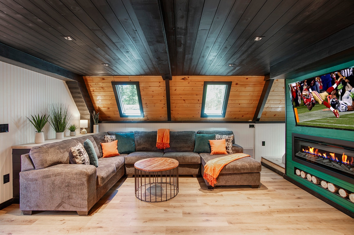 Escápate a nuestra moderna cabaña en forma de A en Flagstaff, un refugio perfecto para un máximo de 6 huéspedes. Ubicado en pinos ponderosa, cuenta con wifi rápido, una acogedora chimenea y un patio completamente vallado para tu mascota. Disfruta del aire de montaña en la espaciosa terraza, a poca distancia en auto del centro de la ciudad y de NAU. Esta elegante cabaña ofrece la combinación ideal de encanto rústico y comodidad moderna para tu aventura durante todo el año.