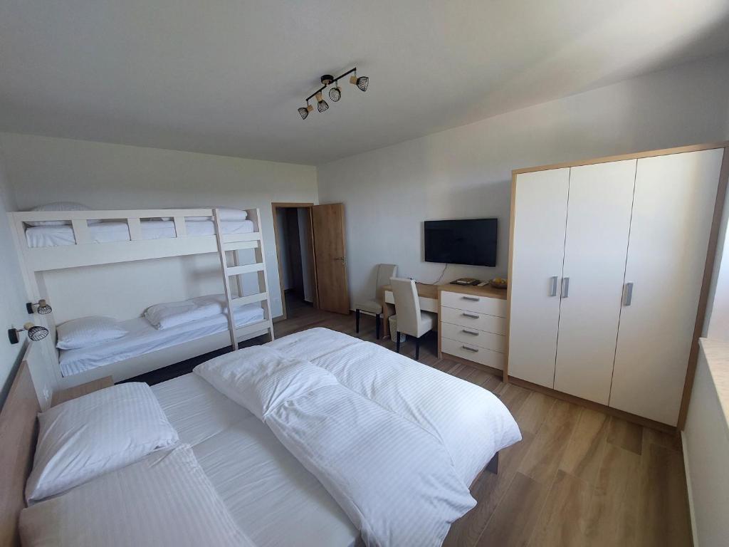 Nuestro alojamiento ofrece tres apartamentos bellamente amueblados, perfectos para grupos más grandes, familias o amigos. Cada suite está diseñada para ofrecer comodidad y privacidad. Departamento 1 en el apartamento 2 (5 personas): 2 dormitorios, uno doble y otro con litera Sala de estar con asientos extensibles Baño Terraza Departamento 3 (2 personas): Dormitorio: una cama matrimonial Baño Terraza El desayuno también es posible por acuerdo (cargo adicional). ¡Alojamiento ideal para pasar tiempo junto con la posibilidad de privacidad y comodidad!
