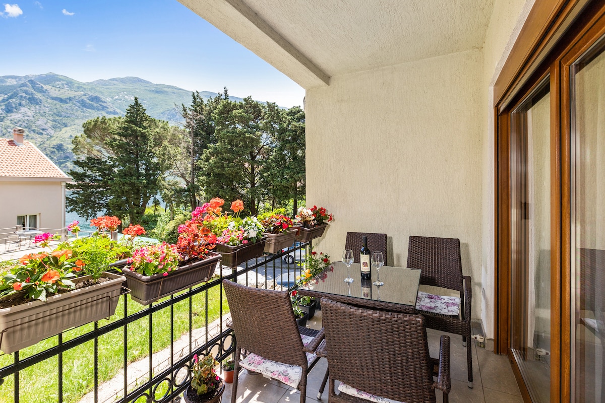 Estamos alquilando un nuevo apartamento de un dormitorio con balcón y una de las vistas más impresionantes de la bahía de Kotor. Su posición es perfecta para nadar y pasear por la orilla del mar. El apartamento está totalmente equipado con todos los muebles y electrodomésticos necesarios y una conexión wifi rápida. Ideal para parejas y familias con niños. Hay una plaza de aparcamiento gratuita justo delante del apartamento. ¡Nos encantaría darte la bienvenida a Kotor y esperamos que disfrutes de tu estancia en nuestro hogar!