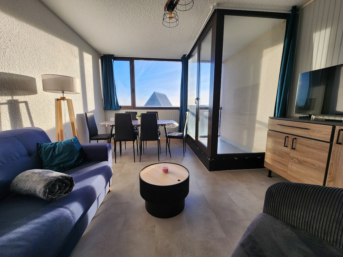 Propongo un bonito apartamento para 4/5 personas (para 4 personas solo en invierno), centro de la estación, orientado al sur con hermosas vistas a los Montes del Cantal, el lago de las Armiñas y las pistas de esquí. El apartamento dispone de un gran balcón con zona de comedor y tumbona. El apartamento está cerca de todos los servicios: aparcamientos, restaurantes, tiendas, panaderías, piscina, lago, playa, parque infantil, teleférico de la Perdrix, ...