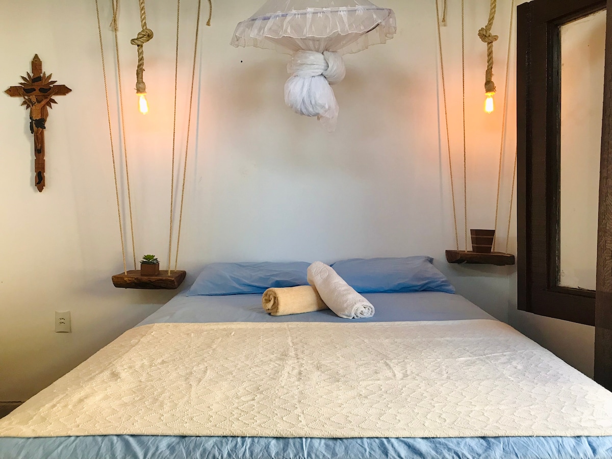 La experiencia boutique Descubre esta colorida escapada artística con vistas a la bahía de Todos os Santos. Disfruta de acceso exclusivo al tercer piso con un acogedor dormitorio, una elegante sala de estar y una pequeña cocina pequeña al aire libre. Relájate en la azotea con bañera y ducha al aire libre mientras disfrutas de impresionantes puestas de sol. Compartirás el resto de la casa con mi familia, 2 perros amistosos y 2 gatos. Ofrecemos un desayuno encantador en la cocina principal.