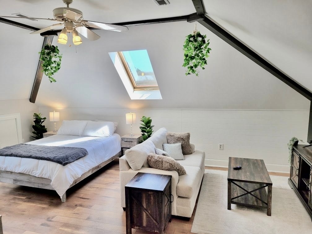 El apartamento Pond View Loft ofrece un refugio privado en una tranquila propiedad boscosa de tres acres con un hermoso estanque abastecido de tres cuartos de acre alimentado por manantiales. Convenientemente ubicado a solo siete millas de Wrightsville Beach y a diez millas del centro de Wilmington, el loft ofrece el equilibrio perfecto entre aislamiento y accesibilidad. También hay cerca tiendas, restaurantes y opciones de entretenimiento, como un cine.
