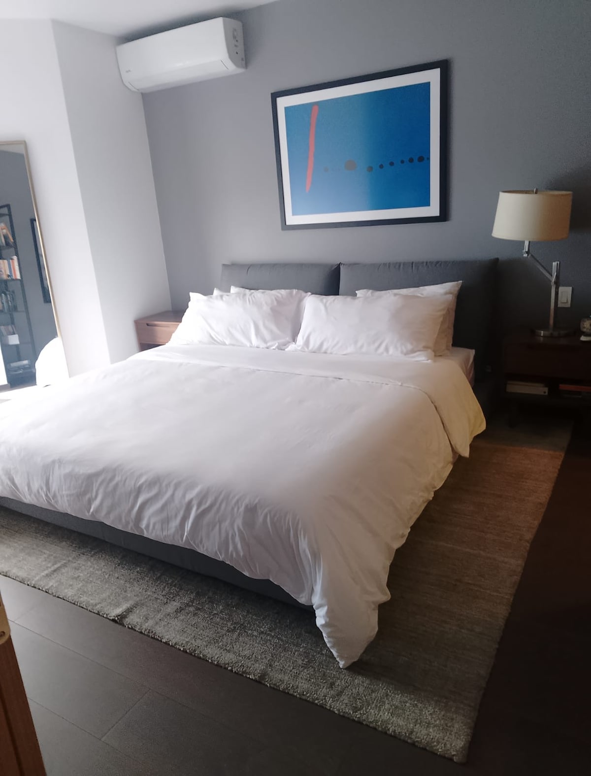 Disfruta de una estancia con estilo en este apartamento céntrico, completamente equipado, con seguridad 24/7. ✨ Amenidades incluidas: ✔ Acceso a área de coworking ✔ Vistas impresionantes desde la azotea ✔ Gimnasio completamente equipado ✔ Ruta para bicicletas ✔ Cerca de museos, parques y boutiques 🏡 Comodidad y Conveniencia: ✔ WiFi rápido ✔ Agua caliente ✔ Lavadora y secadora 🛏 Habitación Principal: ✔ Walk-in closet ✔ Escritorio con silla y lámpara ✔ TV