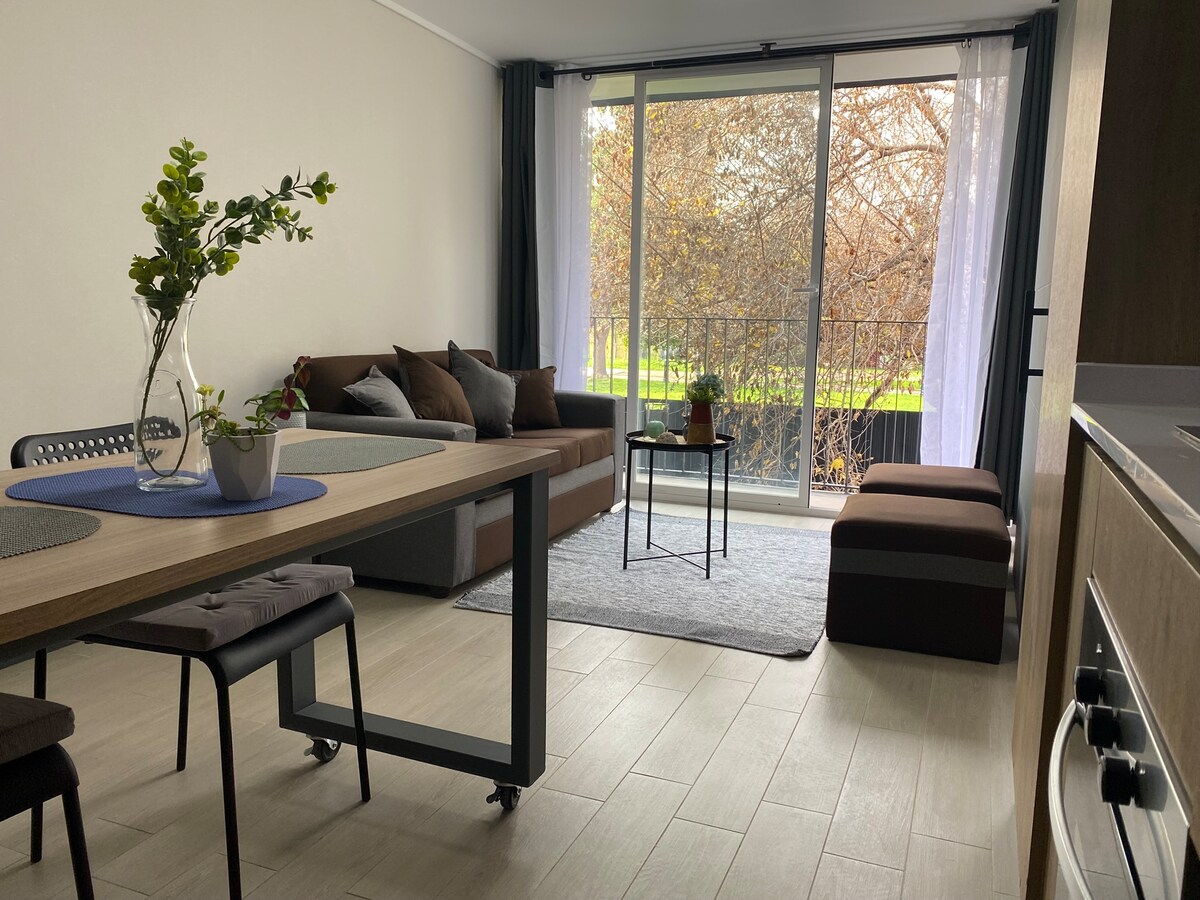 Moderno y acogedor departamento con aire acondicionado en el corazón de Santiago. A pasos del metro y del Centro Histórico, rodeado de museos, mercados y restaurantes. Cama king, cocina equipada, balcón y wifi rápido, ideal para viajes o estadías largas. Edificio seguro con conserje 24/7. Atención personalizada, check-in flexible y recomendaciones locales para que disfrutes la ciudad como un residente, con comodidad y tranquilidad.