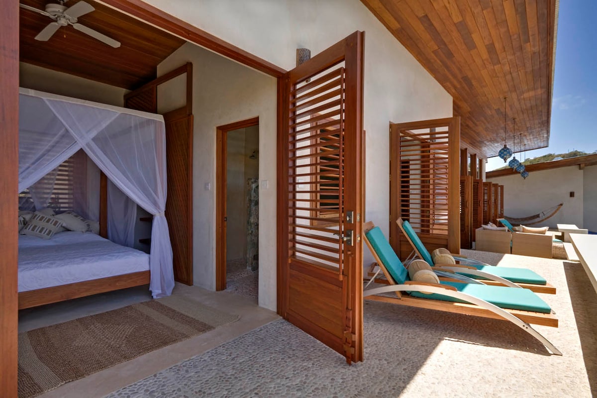Este exclusivo espacio de estilo ático con aire acondicionado ofrece vistas de casi 360 grados que abarcan tanto el océano Atlántico como el mar Caribe, capturando tanto el amanecer como el atardecer. El baño privado en suite tiene una ducha «abierta al cielo» y vistas a la laguna. 100 escalones te llevan a nadar de forma segura en el mar. Ten en cuenta que no se permiten reservas para bebés o niños debido a la ubicación junto al acantilado y que el acceso es a través de una escalera de caracol abierta.